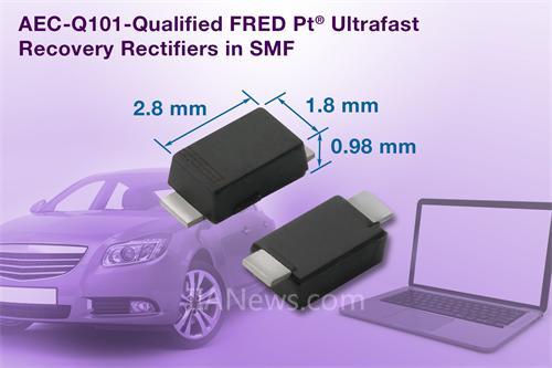 日前,Vishay Intertechnology, Inc.(NYSE 股市代号:VSH)宣布,推出4个采用的小尺寸、低外形SMF (DO-219AB) eSMP®系列封装的新型1A FRED Pt®超快恢复整流器。通过AEC-Q101认证的VS-1EFH01WHM3、VS-1EFH01W-M3、VS-1EFH02W-M3和VS-1EFH02WHM3具有极快和软恢复特性,在汽车和电信应用里可减少开关损耗和功率耗散。