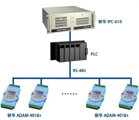 由于研华ADAM-4018+温度采集模块采用 RS-485 通讯方式,可远距离通讯,系统所有模块只需要用一条通讯线进行连接,具有高通讯速率,高采样分辨率,智能化、光电隔离、强抗干扰和双看门狗设计,使系统的可靠性增强,数据高速I/O成为可能,支持标准的MODBUS协议,可以和PLC进行无缝连接,软件开发非常简单。