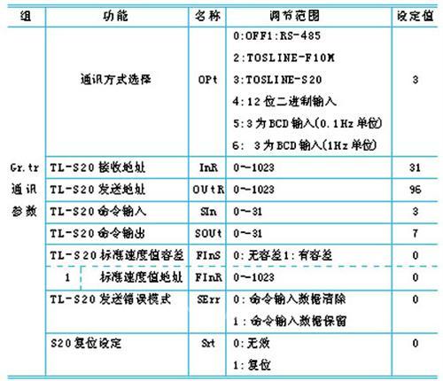 在参数设定过程中,vf-a5东芝变频器通讯部分参数设定如附表所示。