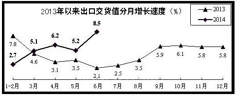 (五)政策效应陆续释放,市场信心逐步改善。今年以来,中央在稳增长、促改革、调结构、惠民生方面又采取了一系列立足当前、行稳致远的政策措施,有力地改善了实体经济发展环境,稳定了社会预期,提振了市场信心。3-6月,国家统计局公布的制造业采购经理指数分别为50.3%、50.4%、50.8%和51%,呈逐月回升态势。其中,6月份新订单指数达到52.8%,为去年10月以来的最高点;工业生产者出厂价格同比分别下降2.3%、2%、1.4%和1.1%,降幅在逐月收窄。
