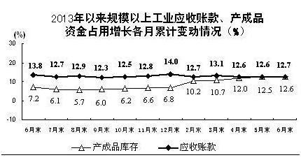 三是企业成本和资金压力仍未缓解。今年以来,企业面临的市场、成本和资金压力进一步加大,规模以上工业企业每百元的主营业务收入中平均成本支出比2011年同期高1.2元左右,比去年同期高0.4元左右。从2012年初开始,应收账款资金占用增加,拖欠问题加剧,规模以上工业企业月末应收账款增幅持续高于主营业务收入增幅,到今年6月末,应收账款达到10万亿元,同比增加1.1万亿元,增幅达12.7%,高出上半年企业主营业务收入增幅4.1个百分点。地方和企业普遍反映,应收账款增加对生产经营造成的压力甚至比融资难、融资贵更大。在应收账款快速增加的同时,企业产成品库存增长也在加快,加重了企业资金压力。上半年,工业企业产成品库存同比增长12.6%,较去年同期上升5.4个百分点,高出上半年企业主营业务收入增速4个百分点。此外,一些地方和企业对金融系统惜贷、压贷和抽贷的情况反映强烈,企业的财务成本显著上升。上半年,规模以上工业企业财务费用同比增长16.5%,同比提高13.9个百分点;其中利息支出增长11.2%,同比提高6.2个百分点。在市场、成本、资金等多重压力下,一些行业和企业生产经营状况较为困难,中小微企业更为突出。上半年,中小微企业财务费用增长17.5%,目前不少地方对中小企业贷款利率一般上浮30%以上。