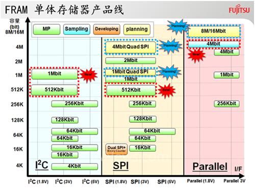 宽泛的FRAM产品线——涵盖SPI、IIC、并行接口,容量向8Mb迈进