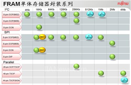 图3.富士通半导体 FRAM产品线涵盖SPI、IIC、并行接口。