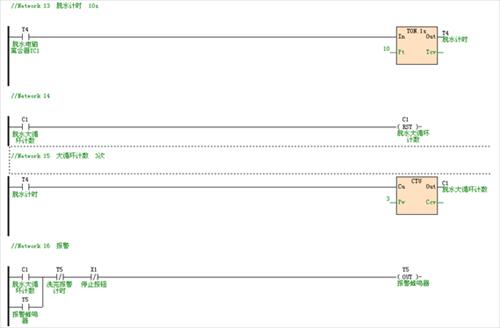 此外,还要求可以按排水按钮以实现手动排水;按停止按钮以实现手动停止进水、排水、脱水及报警。