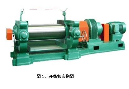 开放式炼胶机简称开炼机或炼胶机,又称双辊捏炼机。它通过两个水平放置并以不同线速度相对回转的辊筒,将橡胶原材料进行剪切、挤压使其塑化、混合,制成符合生产加工要求的坯料。开炼机可供橡胶的塑炼、混炼、热炼和压片等,主要由辊筒、机架、轴承、调距装置、加热冷却系统、事故停车装置、润滑系统和电气控制系统等部分组成。