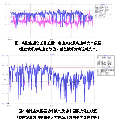 电除尘部分为厂用电主要的电能消耗负载之一,由于电除尘为两相整流,且根据工况需要快速变化的负载特性,产生的大量快速变化的无功和谐波分量,典型的电流谐波畸变率约30%~40%,无功功率含量过高带来功率因数严重偏低,约为0.75,为电除尘设备和配置的变压器的安全运行带来巨大隐患,图1和图2为在新疆某发电厂测试的电除尘电能质量数据。