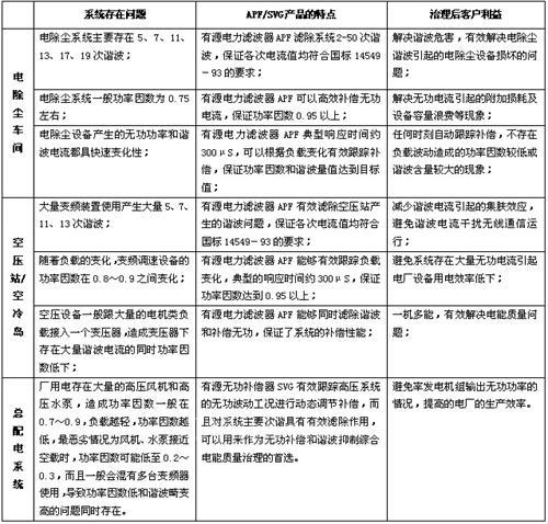 表2 发电厂采用SVG\APF进行无功功率补偿及谐波治理可行性分析