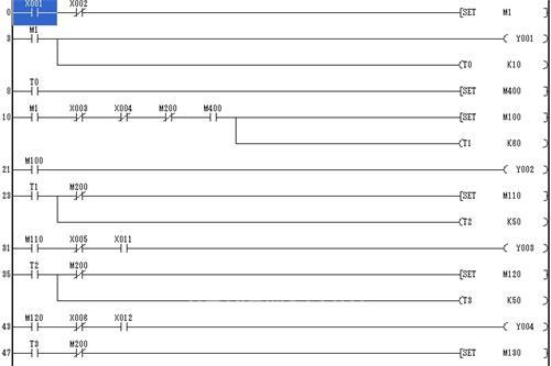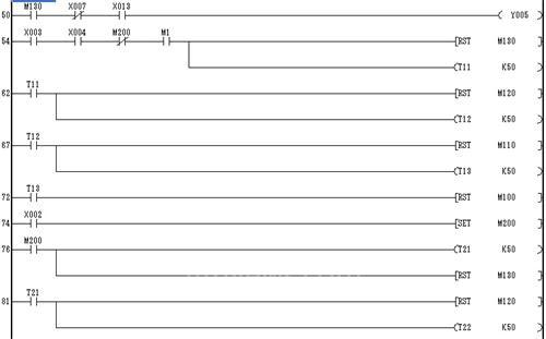 工程软件是在三菱的PLC编程环境下结合工艺要求,用步进阶梯指令编程,如下示: