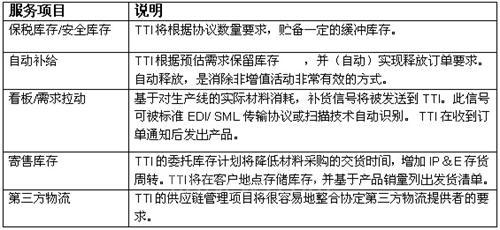 TTI的核心竞争力正是通过各种量身定制的供应链服务,满足客户的特定需求,在高效和有效的管理过程中,降低客户采购成本,减少库存,保护进料的流动性。TTI拥有一套独有的高级库存管理系统(AIM),它经过特殊设计,能简化成千上万个低成本组件的管理,确保数据处理的准确性,同时增加对客户的产品供应,并消除无附加值的交易。