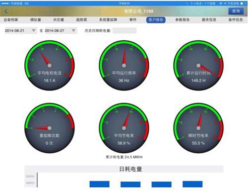 1、 变频管家移动客户端APP:同时推出IOS和Android的APP,使用手机,Pad等移动设备可以随时随地查看设备状态。报警推送功能使您不需打开APP就能发现设备的异常报警。趋势图和运行报告让您随时随地查看设备的运行趋势和统计报告。