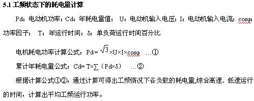 根据计算公式③④⑤,通过计算可得出变频情况下各负载的耗电量,根据加权时间得出设备在变频调速下运行的平均功率。