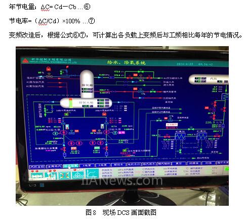 由现场采集的DCS的图片以及现场运行人员反馈,当时机组运行负荷为73MW,给水泵的转速为2974r/min(额定转速4725r/min),如原有液偶的情况下,转速也基本相当,根据液偶的效率可计算出在此转速节电率在30%左右,秋季和春季运行情况和图片中的运行状态基本相同;机组冬季和夏季负荷会稍高,达到100MW以上,所以节电率会降低,约在15%左右。