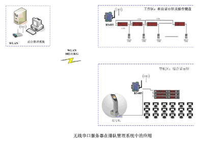 当然随着WLAN技术的成熟及相应硬件成本的逐渐降低,串口设备无线联网(串口设备接入WLAN)其优势十分明显,因此排队系统中的所有串口设备也可很轻松的通过WLAN接入后台管理系统。