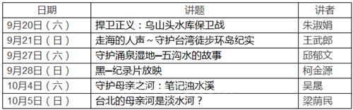 “水逐迹”特展展期为9月13日至10月8日,免费入场,每周六与周日,特别邀请朱淑娟、王武郎、邱郁文、柯金源、吴晟与梁荫民等台湾知名逐水旅人,分享他们与水的故事。希望带起一片大大涟漪,让台湾土地有机会在水资源、环境保护与人类发展中找到平衡。