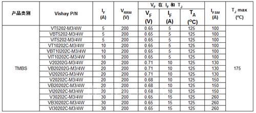 Vishay近日推出正向压降低至0.65V、电流等级为5A~30A的15个新款 200 V Gen-2 TMBS® Trench MOS势垒肖特基整流器。