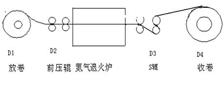 摘要:氮气光亮退火炉——是将不锈钢薄板经过氮气光亮退火炉,进行高温处理,使不锈钢薄板变软,再进行后序的一系列加工处理,再形成成品。此道工序,对产品的质量影响致关重要,所以对此有较高的要求。一般由几个部分组成:放卷电机、前压棍电机、S棍电机、收卷电机等。其放卷电机、前压棍电机、S棍电机均为5.5 kW,收卷电机为30 kW。系统的操作过程——将一卷不锈钢薄板,由放卷电机,经前压辊牵引进入退火炉,通过高温加热处理后,再经S辊电机牵引,由收卷电机进行收卷。工作过程中,各部分的恒线速度恒定,对产品的后序加工有着重要的影响。如下图1所示: