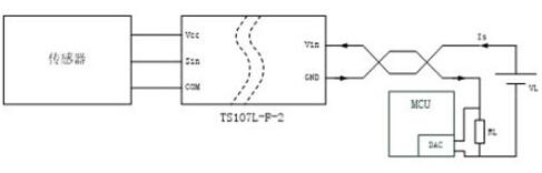 为了进一步提高两线制信号隔离传输电路的信号传输精度,同时简化两线制接口电路,可以采用集成二线制转换器和信号隔离电路的TS107L-F-2。