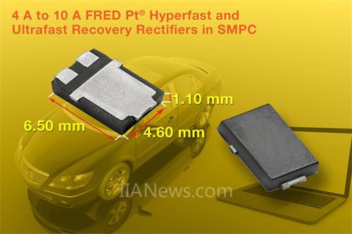日前,Vishay Intertechnology, Inc.(NYSE 股市代号:VSH)宣布,推出27个采用小尺寸、低高度SMPC (TO-277A) eSMP系列封装的新型4A~10A FRED Pt® Hyperfast和Ultrafast快恢复整流器。这些通过AEC-Q101认证的整流器具有极快和软恢复特性,以及低泄漏电流和低正向压降,可减少汽车和电信应用里的开关损耗和过耗散。
