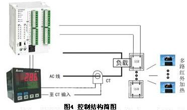 本文中,机型采用红外加热,温度均匀、效率高。从PLC直接作PID运算提升到温度专用控制器,DT3为温度控制核心,减轻PLC计算量,提高了加热关键工序的控制效果。利用DT3配置的电流检测模块,红外加热片的日常维护检测极为方便,提高了工作效率。