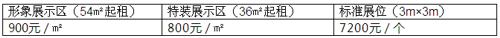 备 注:1.标准展位基本配置:3m×3m展位(包括三面围板、一块楣板、一桌两椅、两个射灯、220V电源插座);形象和特装展示区: 2.不含任何配套设施,由参展单位自行或委托设计、装修。