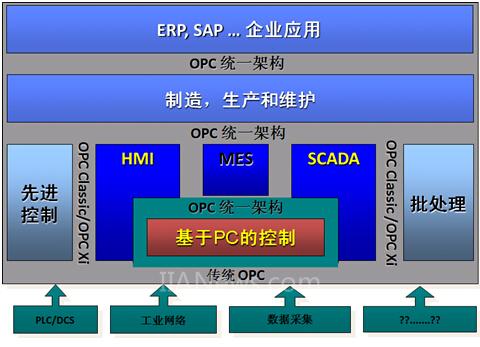 创建OPC的初衷,基本的想法是为所有设备的通话提供一个标准化的接口。这解决了供应商驱动程序编写最小化问题。现在,OPC UA已经完成了标准化的接口,而且超越了简化通信的需求,不光具有标准化对话窗口、简单文本的标准化表示、动态变量/图表和文件归档,而且集成了所有工业流行的网络设备,使OPC、Profibus国际组织(PNO)、HART、现场总线基金会(FF)、现场设备技术(FDT)、增强型设备描述语言(EDDL)走到了一起。