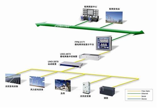 由于环境保护和能源枯竭的双重压力,迫使我们大力发展清洁的可再生能源。高效分布式能源工业(热电联供)的发展潜力和利益空间巨大。提高供电可靠性和供电质量的要求以及远距离输电带来的种种约束都在推动着在靠近负荷中心设立相应电源。通过研华微电网控制器可以实现对整个电网的集中控制,不需要分布式的就地控制器,而仅采用常规的量测装置,量测装置与就地控制器之间采用快速通讯通道。采用分布式电源和负荷的就地控制器实现微电网暂态控制,微电网集中能量管理系统实现稳态安全、经济运行分析。微电网集中能量管理系统与就地控制器采用弱通讯连接。