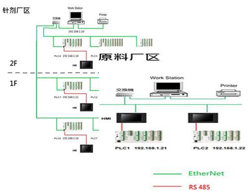 针剂厂区工作场所为一二层建筑,共10台空调,采用台达PLC DVP系列12SE主机及扩展模块作为控制器,每台空调均配有一台安装在控制柜上的HMI人机界面作为现场端监控上位机监控空调运转状况,监控室内设有一台主控制电脑,由SCADA监控系统对整个针剂厂区空调运转状况实施监控。