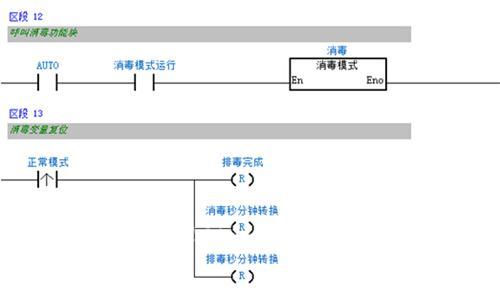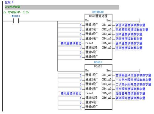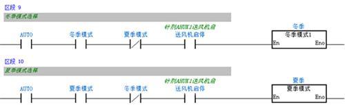 PLC控制程序采用台达ISPSoft软件编辑,将控制程序分为若干功能块Function Block(简称FB),包括季节模式FB、消毒模式FB、PID运算FB、模拟量处理FB等