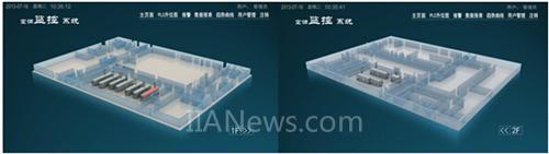a) 此画面为主画面——楼层画面1F、2F,按照现场CAD图纸建模,与现场建筑结构及空调箱位置高度一致;