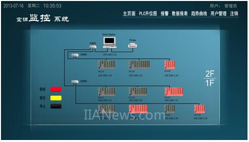 a) 此画面为PLC升位图画面,显示整个监控系统架构;