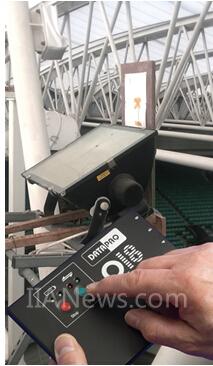 雨过天晴,温网球场上空的折叠顶棚徐徐打开,阳光夹杂着雨滴顺着顶棚边缘洒落在球场和观众席上。不久之后,工作近三个小时的人造光源-1000w的泛光灯,也将从顶梁上移走。看似常规而平淡的操作,却隐藏着巨大的安全隐患。