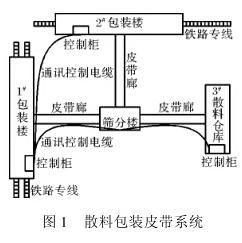 输送皮带控制一般用于散料到成品袋包装系统,中海石油天野化工(集团)有限责任公司散料包装皮带系统见图1。