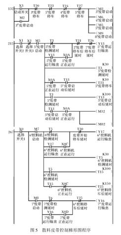梯形图编辑软件是三菱公司提供的GXDeveloperV7?8中文编辑软件,散料皮带控制梯形图程序以图5为例说明如下: