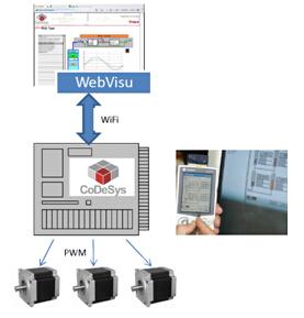 这只机械狗是将CODESYS Runtime移植到嵌入式树莓派开发板,通过PWM控制方式驱动舵机,同时利用CODESYS Softmotion功能块来完成机械狗的运动控制,再由手机访问CODESYS WebVisu来实现对机械狗的远程控制。