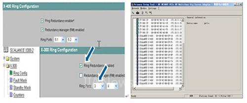 在环上以一台交换机作为环管理交换机RM ,从RM结点的主、辅两个接口均发送健全探测消息,其他节点在从环接口上收到健全探测消息则反射回去,从而达到对环网的冗余控制。环的状态可分为,正常状态、切换状态和冗余状态。在用西门子工业交换机组环网时需要注意太网总是保持总线型传输结构,在配置完成前,不能闭合环网链路。HSR不可以与其他品牌具有环网协议产品的串接共同组环。在配置前需用PST(西门子初始化软件)为交换机配置IP地址等内容。