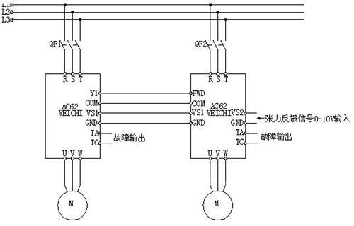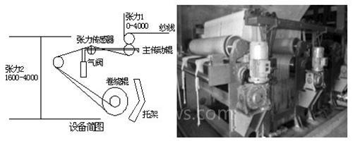 采用伟创AC62-22kW变频器和22kW变频电机,通过1:1.3的皮带盘带动卷绕辊;PLC控制整机程序及动作。采用张力辊和张力检测器。
