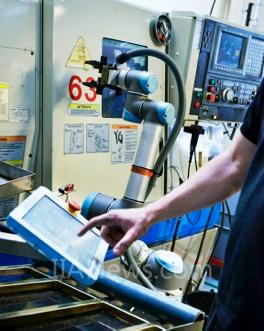 在全球80%的UR机器人经过了风险评估后已在无安全围栏的生产线上投入使用。特瑞堡密封系统有限公司(Trelleborg Sealing Solutions)的所有42台UR机器人都没有使用安全围栏。许多加工密封件的数控机床现在都能在无人监管的情况下独立工作约1小时,甚至长达更多,只要齿条上有生产部件,人工监管就不需要。