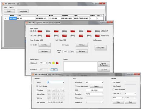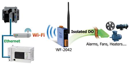 WF-2042为WF-2000无线产品家族成员之一,其为具备16通道隔离数字量输出的无线I/O模块。除此之外,WF-2042也符合IEEE 802.11 b/g的无线网络标准。随着网络基础设施的普及与移动技术的进步, WF-2042可轻易的融入无线网络中,透过Modbus TCP/UDP通信协议与网络加密的配置,用户可轻易将WF-2042整合到任何SCADA 软件,为用户提供方便、安全的无线I/O解决方案。