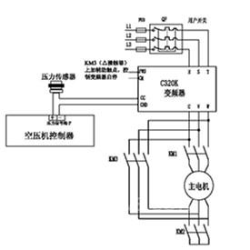 改造时,保留客户原有空压机控制器(普乐特普通型或者其他品牌的控制器),与四方C320(J)空压机专用型变频器组成的变频控制系统,保留原有工频星-△转换的接线,并做部分改动,其他辅助电气元件和电控柜也保留不动。