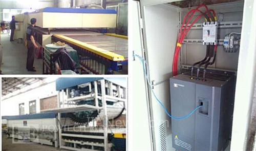 鼓风机控制是玻璃钢化的重要环节,其对玻璃钢化质量有直接影响,钢化时要求冷却区的风量、风压能在短时间内迅速建立,充分冷却以达到钢化效果。变频器加速时间过长,风压建立慢将会造成玻璃制品钢化不完全而影响产品质量,但变频器加速时间过短又很容易引起变频器过流保护,鼓风机变频器就要选用恒转矩型或加大功率等级,在调试时如果变频器在启动时间内启动困难则可适当提前风机变频器的启动时间以满足工艺要求。