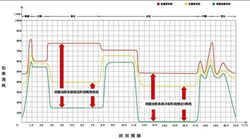 传统定量泵注塑机是采用定量泵供油的,注塑过程的各个动作对速度、压力的要求不一样,它是通过注塑机的比例阀采用溢流调节的方式将多余的油旁路流回油箱,在整个过程中,马达的转速是不变的,故供油量也是固定的,而由于执行动作是间隙性的,也并不可能是满负载的,因此定量供油浪费了很大的能量。