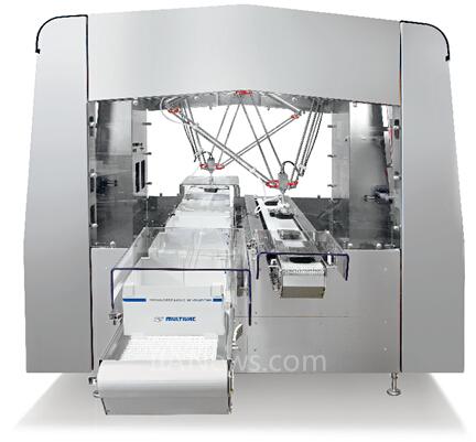 MULTIVAC 搬运模块自动完成各种包装任务,包括产品装载、包装的分离和定向、拒绝有瑕疵的包裹和将包装装箱。根据需要,系统可以配备两轴、三轴或四轴机器人,并可灵活地用于各种产品、包装规格、重量和周期时间。