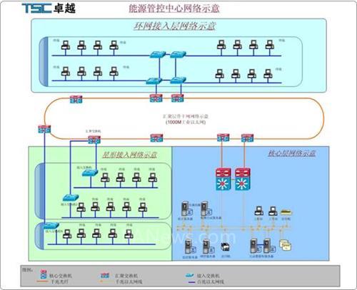 能源管控系统网络工程主要是对某集团能源管控系统网络部分进行新建,为了在网络建成后建立安全、稳定、可靠的网络系统。在设计原则上,传输层实现1000M光纤的环网设计。在核心层和传输层的连接上,采用1000M光纤连接,从而保证网络的可靠、稳定性。在接入层的连接上采用100M连接。