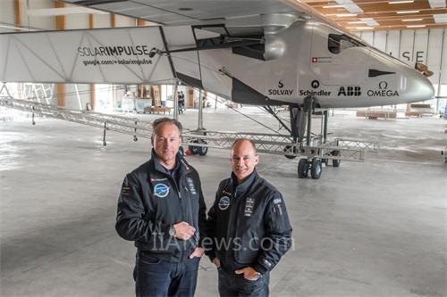 阳光动力项目发起人、董事长兼飞行员贝特朗-皮卡德(右)和