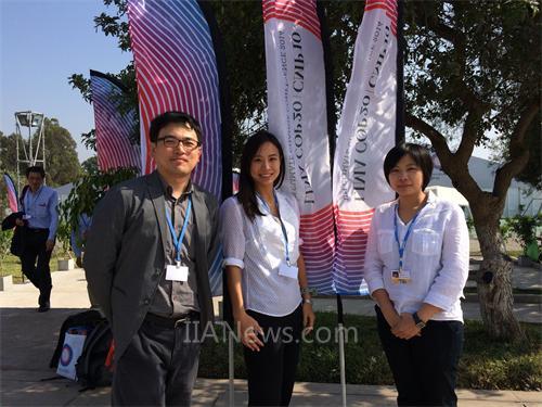 台达基金会三位气候与能源专员(左起)谢雯凯,叶怡辰及吴郁娟于COP20会场留影