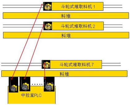 某钢铁股份有限公司型钢烧结原料场于2004年5月投产使用,共有7台堆取料机,担负着储存、输送烧结原料的重要任务。堆取料机与中控室的信号连锁采用滑触线传输,但最近运行时,经常出现地面输送皮带与堆取料机联锁信号中断,造成皮带压料、烧坏电机等故障,严重影响正常的生产。据统计,滑触线故障率占堆取料机总故障的70%,这已经成为制约堆料、取料正常运行的瓶颈。