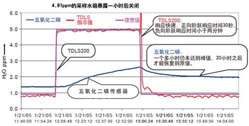 TDLS200与使用P2O5传感器的湿度分析仪的响应能力比较