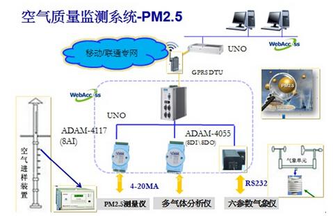 ADAM-4000在PM2.5空气质量监测中的应用架构图