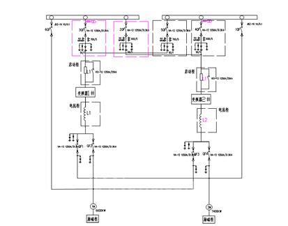 根据现场需求,2台变频器互为备用并具备同步投切功能,主回路图如图4所示: