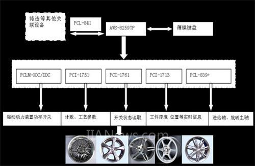 该系统包括人机界面计算机应用平台(AWS-8259TP)、用于连接显示器、键盘等外围设备,以及I/O扩展(PCI-1713+PCI-1751+PCI-1761+PCL-841+PCL-839),用于电器设备的开关控制,温度、压力、轴速控制等。配备WEBACCESS等组态软件,由此构成完整的轮毂旋压制造设备系统。概述整个系统架构原理: